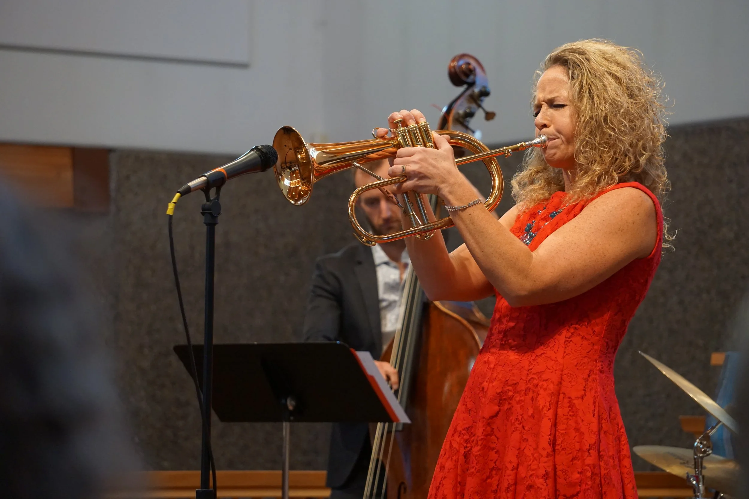 Christine grew up singing harmony with her family. She learned to play trumpet in middle school band with Mr. Shephard. She fell in love with jazz when introduced to it by John Mattern at Ukiah High School. She studied with Michael Siggard at BYU-Hawaii and at Berklee with Ken Cervenka, Charlie Lewis, Tiger Okoshi, Phil Wilson and more. Advanced studies with John McNeil, Fred Mills, Chase Sanborn and Bobby Shew.